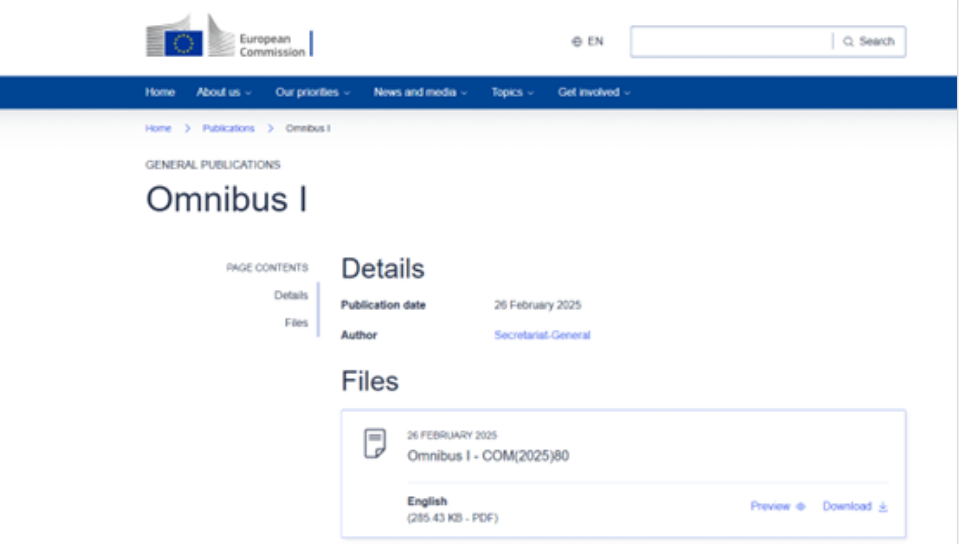 参考资料: [1]https://www.reuters.com/world/europe/eu-set-propose-sweeping-red-tape-cuts-boost-business-competitiveness-2025-02-26/ [2]https://www.reuters.com/sustainability/whats-inside-eus-simplification-omnibus-sustainability-rules-2025-02-26/ [3]https://www.reuters.com/sustainability/eu-proposes-cutting-back-sustainability-laws-companies-2025-02-26/ [4]https://ec.europa.eu/commission/presscorner/detail/de/qanda_25_615 [5]https://ec.europa.eu/commission/presscorner/detail/es/speech_25_631 [6]https://ec.europa.eu/commission/presscorner/detail/en/ip_25_614 [7]https://commission.europa.eu/publications/omnibus-i_en [8]https://commission.europa.eu/publications/omnibus-ii_en [9]https://www.consilium.europa.eu/en/press/press-releases/2024/11/08/the-budapest-declaration/ [10]https://www.politico.eu/article/most-eu-firms-exempted-from-green-reporting-under-proposed-omnibus-bill/ [11]https://esgnews.com/zh-CN/the-eus-omnibus-simplification-is-out-what-businesses-need-to-know/ [12]https://www.wwf.eu/?17206391/Von-der-Leyens-deregulation-omnibus-A-devastating-blow-to-EU-environmental-objectives [13]https://www.wwf.eu/?17157941/Simplification-Omnibus-A-ticking-time-bomb-for-crucial-EU-sustainable-finance-laws [14]https://greencentralbanking.com/2025/02/26/eu-sustainability-omnibus-proposal/ [15]https://www.forbes.com/sites/jonmcgowan/2025/02/25/omnibus-bill-to-reduce-eu-sustainability-reporting-on-february-26-agenda/ [16]https://www.forbes.com/sites/jonmcgowan/2025/02/24/leaked-draft-shows-weakened-eu-sustainability-due-diligence-law/