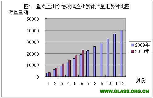 本月生产浮法玻璃3981万重量箱,与去年同期相比多生产777万重量箱;1-6月份累计生产浮法玻璃22816万重量箱,同比增加19.72%(见图1)。累计产量最多的省份是:河北省4742万重量箱,同比增加47.86%;山东省3223万重量箱,同比增加57.76%;江苏省2144万重量箱,同比增加2.58%;浙江省2015万重量箱,同比增加13.33%;广东省1809万重量箱,同比减少9.69%;。