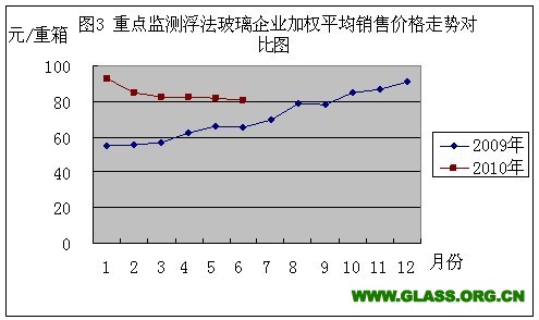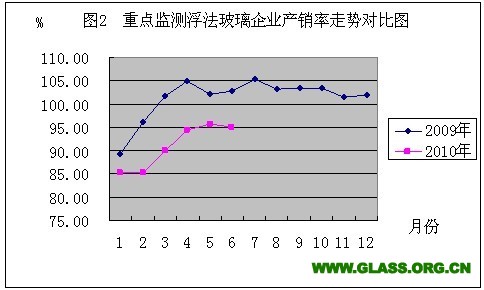 本月销售浮法玻璃3844万重量箱,与去年同期相比多销售560万重量箱,环比少销售102万重量箱,产销率为96.56;1-6月累计销售浮法玻璃21888万重量箱,同比增加11.87%,多销售2323万重量箱,累计产销率95.93%,累计产销率同比下降6.73个百分点(见图2)。累计销量最多的省份是:河北省4638万重量箱,同比增加43.99%;山东省3045万重量箱,同比增加51.04%;江苏省2021万重量箱,同比减少5.65%;浙江省1907万重量箱,同比增加7.07%;广东省1758万重量箱,同比减少18.91%。