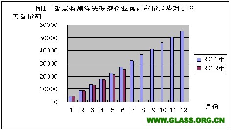 依据中国建筑玻璃与工业玻璃协会对全国重点监测浮法玻璃企业月报数据综合统计显示:本月产量、销量与去年同期相比都有所减少; 6月份累计产量同比减少7.50%;累计销售量同比减少7.50%;期末库存量同比增加705万重箱,环比减少238万重量箱;本月产品价格每重量箱环比上升4.23元,同比下降5.91元。