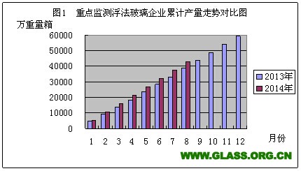 依据中国建筑玻璃与工业玻璃协会对全国重点监测浮法玻璃企业月快报数据综合统计显示:本月产量、销售量与去年同期相比都有所增加; 2014年8月份累计产量同比增加11.57%,累计销售量同比增加11.93%;本月期末库存4632万重量箱,与去年同期相比增加286万重量箱,与上月相比减少520万重量箱;本月综合加权平均价格,环比上升0.45元/重量箱,同比下降9.97元/重量箱。