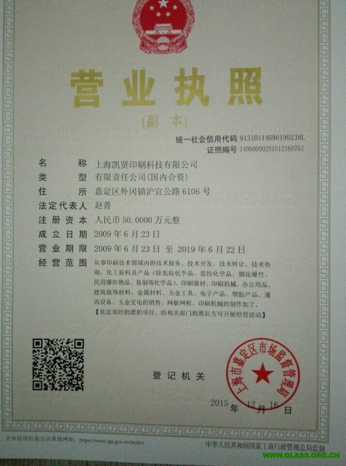 上海凯贤印刷科技有限公司 营业许可证、组织机构代码证、税务登记证三证合一。