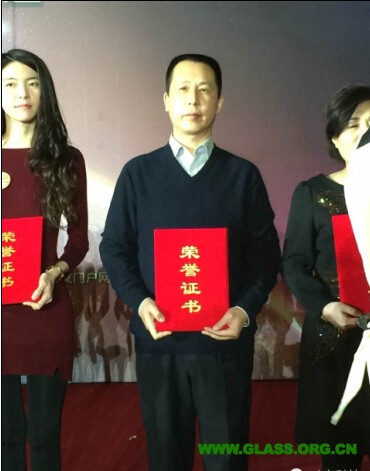 硅宝科技市场总监王有强先生(中)上台领取荣誉证书