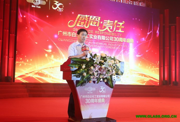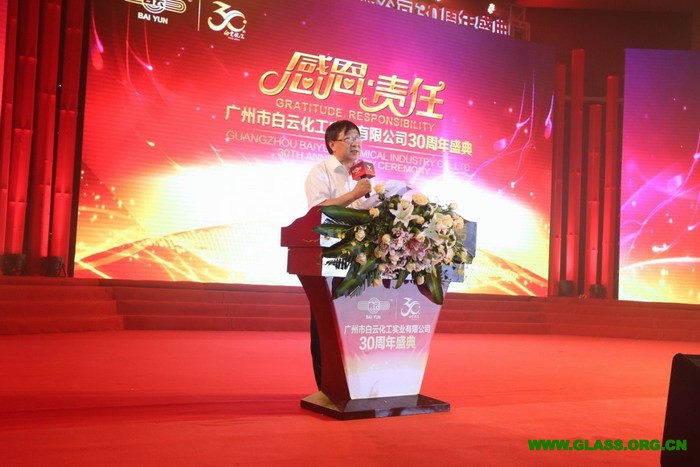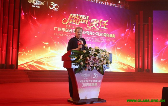 中国建筑装饰协会会长李秉仁、中国建筑金属结构协会秘书长刘哲、中国胶粘剂与胶粘带工业协会秘书长杨栩、中国建筑玻璃与工业玻璃协会副秘书长李会四位领导分别代表协会致辞。诸位领导对白云化工过去的三十年给与了高度的评价,尤其强调了白云化工以顾客为核心,以科技创新、制造工艺、营销服务三大版块为构件并由先进的企业管理模式为链条进行贯穿的企业生态模式。领导们对白云化工未来寄予厚望,如李秉仁会长在致辞中所言:希望白云人能抓住机遇,继续走绿色科技、自主创新和国际化发展之路,力争在建厂四十周年的时候,率领中国建筑密封胶、工业密封胶行业进入中国制造的强国之列。