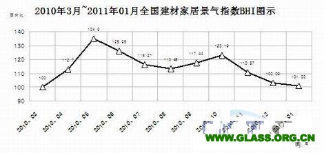 “十一五”期间我国的建材家居市场及建材物流园区的发展是令人兴奋的。五年前规模以上建材家居市场不足1000家,而且市场水平仅处在1—2代之间。销售额也几乎无法统计,管理较为混乱。到“十一五”末,2010年全国规模以上建材家居市场已超过了3000家。“全国建材家居景气指数BHI”也由中国建筑材料流通协会于当年3月推出(见图8)。