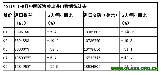 2011年上半年中国浮法玻璃进口数据统计