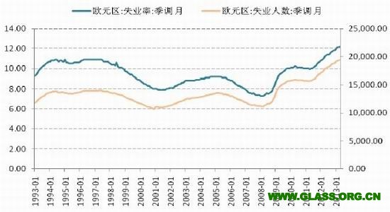 欧元区2013 年4 月份失业率经季节调整后为12.2%,失业率维持在历史高位,显示欧元区经济复苏仍步履蹒跚,未见明显改善。
