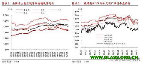 18年11月中下旬以来,全国各主要区域浮法玻璃现货价格走势整体趋稳。而临近春节假期,现货价格虽有所回落,但幅度也不大。目前玻璃下游深加工企业的开工率逐步下滑,除部分外贸加工出口企业外,大部分已经开始停工放假。为了增加出库和回笼资金,近期许多生产厂家推出了一定的优惠政策,促使贸易商和加工企业存货,但力度较为有限。究其原因,一方面是虽然近期厂家库存累积较快,但仍在可控范围内,另一方面当前大部分生产企业的资金仍较为充裕,不需要为购买春节假期运营所需的原燃料而大幅削减价格以回笼资金,因此厂家的促销意愿并不十分强烈。此外,贸易商和加工企业对后期现货价格的态度偏于谨慎,渠道囤货的积极性一般。