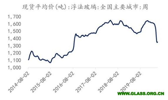 4月份以来,玻璃下游需求得到持续恢复,但前期累积至高位的库存需要集中削减,同时海外疫情导致外贸订单延后或取消,国内销售出现挤压,区域间流动性大幅增加。在供应端压力大、库存高位的背景下,下游深加工企业拿货谨慎,原片企业为促进出货,价格连续下调,截至5月9日,全国主要城市玻璃现货平均价为1352元/吨,价格较上月下跌14%,同比下降8.99%。