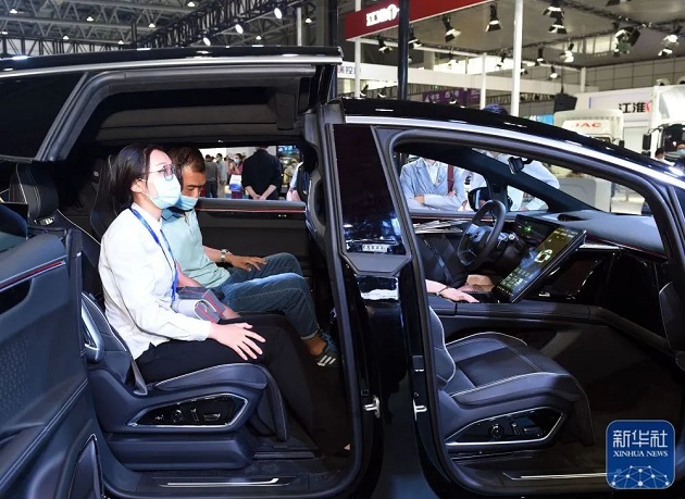 观众在安徽合肥举办的2022世界制造业大会新能源汽车展厅内参观体验(9月22日摄)。