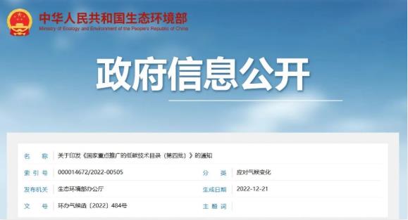 为贯彻落实党的二十大精神,大力支持低碳技术应用和推广,促进碳达峰碳中和目标实现,生态环境部组织征集并筛选出一批先进低碳技术,编制了《国家重点推广的低碳技术目录(第四批)》,包括六大类(节能及提高能效类,非化石能源类,燃料及原材料替代类,工艺过程等非二氧化碳减排类,碳捕集、利用与封存类,碳汇类),共35项低碳技术。(点击文末“阅读原文”获取《国家重点推广的低碳技术目录(第四批)》全文)