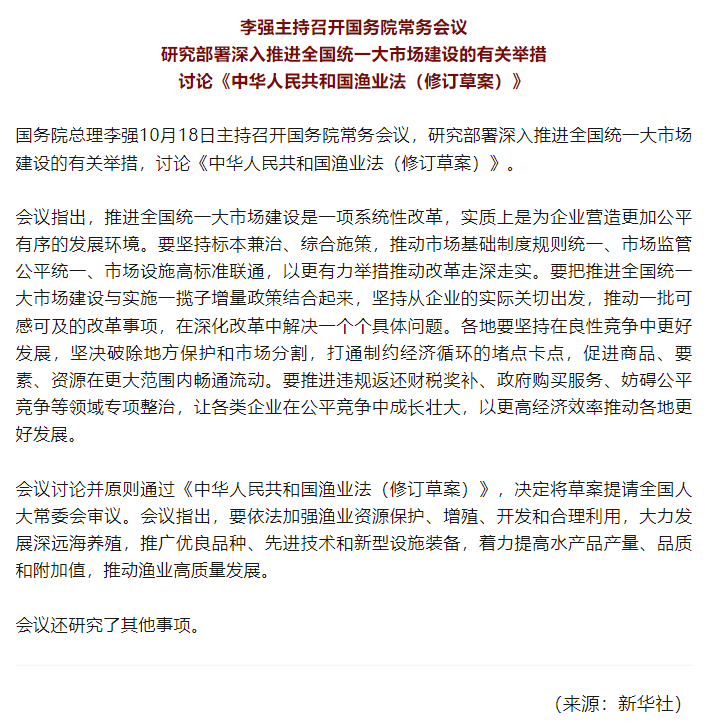 李强主持召开国务院常务会议 研究部署深入推进全国统一大市场建设的有关举措等