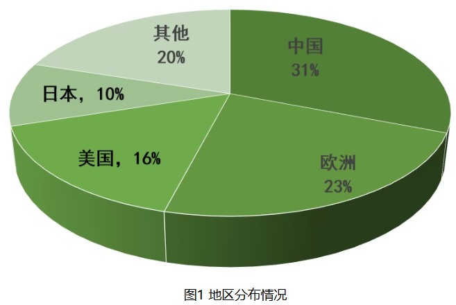从地区分布看,百家公司主要分布在亚洲、欧洲和北美洲。亚洲公司数量最多,主要分布在中国和日本等国家;欧洲公司主要分布在法国、爱尔兰和瑞士等国家;北美洲公司主要分布在美国、墨西哥等国家。