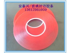 玻璃封边胶条 使用方法:直接把透明夹胶条粘在玻璃四边边缘上,留一灌胶小口,把红色离型膜撕下,再把另一块玻璃盖在胶条上面,压紧防止胶水溢出,在缺口灌进夹胶液,灌好胶水再把缺口封好。