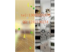 喷砂玻璃,英文名为forsted glass ,是以水混合金刚砂,高压喷射在玻璃表面, 喷砂玻璃以此对其打磨的一种工艺。 包括喷花玻璃和砂雕玻璃,它是经自动水平喷砂机或立式喷砂机在玻璃上加工成水平或凹雕图案的玻璃产品,也可在图案上加上色彩称之谓"喷绘玻璃",或与电脑刻花机配合使用,深雕浅刻,形成光彩夺目、栩栩如生的艺术精品。喷砂玻璃用高科技工艺使平面玻璃的表面造成侵蚀,从而形成半透明的雾面效果,具有一种朦胧的美感。性能上基本上与磨砂玻璃相似,不同的是改磨砂为喷砂。在居室的装修中,主要用在表现界定区域却互不封闭的地方,如在餐厅与客厅之间,可用喷砂玻璃制成一道精美的屏风