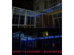 发光玻璃是将贴片型LED发光管粘贴在玻璃中并且采用透明型导线连接而成的一种新型的玻璃。通电时LED闪闪发光、五彩缤纷;而玻璃仍然保持整体的通透性。在门窗、隔断和屋顶的装潢中正在受到人们的关注,在诸如家具、灯具等产品的应用中也开始引起大家的重视。
