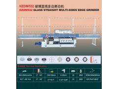 机器简介:本机适用于不同尺寸和厚度的平板玻璃的直线底边及棱角的磨削加工。机器共有九个磨轮,1号~5号磨轮安装在同一活动梁上,可以从0°~45°对玻璃直线底边进行粗、精磨及抛光加工;6号~9号磨轮分别是直线底边棱角的精磨及抛光。此机1号~5号磨轮调0°时,即为九磨头直边磨边机效果,摆至其它角度时,则为多边磨边机用。本机还采用无级变速器调节加工速度,快慢可调,操作方便,加工玻璃粗、精磨,抛光一次完成。