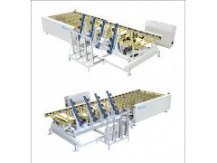 本机采用PLC自动控制,操作控制分手动模式及自动模式,使操作更加人性化。其中上片台由上片段和过渡段组成,达到快速上片,并使玻璃紧靠基准边进入下一工序;下片台由过渡段及下片段组成,采用伺服系统控制。达到快速精准下片,将玻璃自动对齐堆放于玻璃架上。