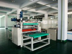 本机根据客户要求设计,主要用于在玻璃表面进行覆膜加工,其关键在于需要对花定位,并且具备较高的精度,以保证产品的一致性。机器生产工艺路线为:玻璃定位喂入→放膜→切边(废边卷取)→离型膜剥离→热复合→牵引过渡→出料。
