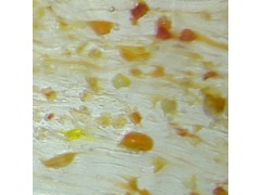 艺术彩点玻璃:玻璃融化后经过拉丝,吹泡两道工序,最后再生产玻璃时将玻璃丝及玻璃泡碎片融入玻璃中,形成碎花的艺术效果。