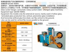 该机型只需需外接气源,主要用于中空玻璃、夹胶玻璃、立式生产线及卧式人工打胶线用,可作垂直于地面的翻转动作,也可作平行于地面的垂直翻转动作。