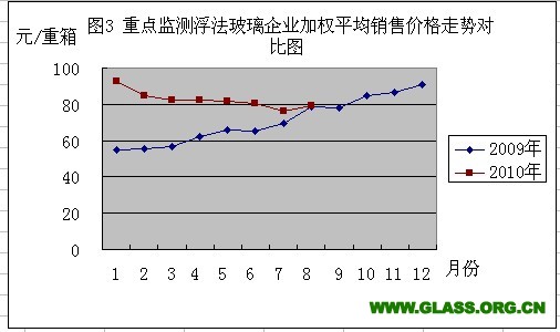 2009年与2010年重点监测浮法玻璃加权平均销售价格走势对比图
