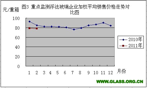 2010年与2011年重点监测浮法玻璃加权平均销售价格走势对比图