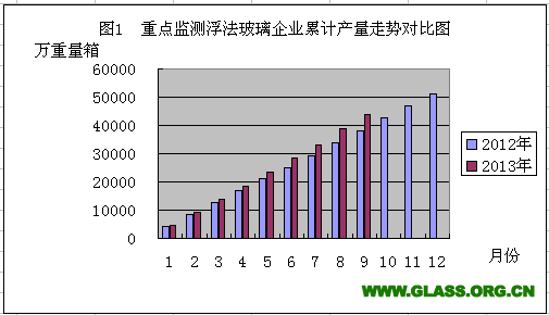 2012年与2013年重点监测浮法玻璃企业累计产量走势对比图(2013年9月份)