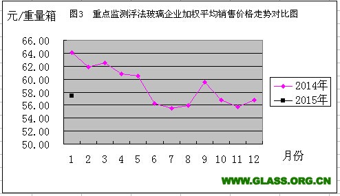 2014年与2015年重点监测浮法玻璃加权平均销售价格走势对比图
