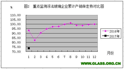 2016年与2017年重点监测浮法玻璃企业累计销售率走势对比图(2017年1月份)