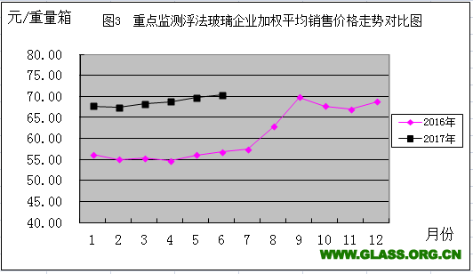 2016年与2017年重点监测浮法玻璃加权平均销售价格走势对比图