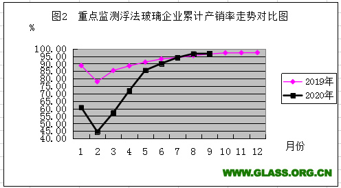 2019年与2020年重点监测浮法玻璃企业累计销售率走势对比图(2020年9月份)