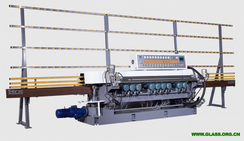十磨头前梁升降式玻璃斜边机,可磨超小片玻璃与超宽斜面多功能为一体的玻璃磨边机。适用于磨削平板玻璃直线斜边与底边,斜边的粗磨、精磨、抛光及底边的磨削一次加工完成;该玻璃斜边机采用直接式磨头电机,结构紧凑,嗓音低;故障少;电机控制双螺杆整体摆角度,数字显示加工玻璃厚度、速度和角度;并有前梁升降功能,具有结构先进,精确度高,操作方便;加工范围广等优点,是具有加工宽边斜边与小片玻璃斜边的多种功能的专用机器。 可用来加工玻璃马赛克、镶嵌玻璃、拼镜、工艺玻璃、相框、水晶、浴室镜、美容镜、装饰镜、家具玻璃等很好的选择,是名副其实的一机多用。
