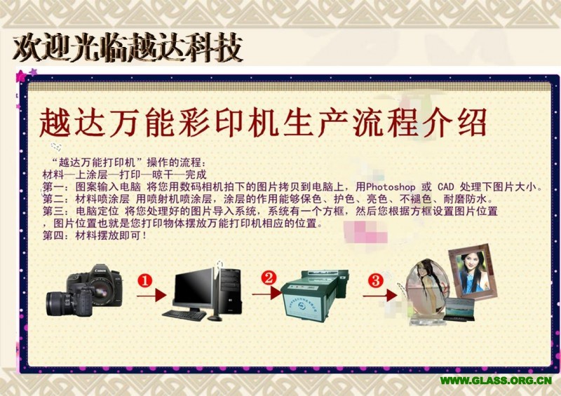6、全彩图像,一次完成,渐进色完全达到照片质量效果,定位精确,废品率为零。