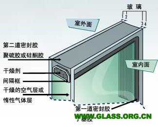 中空玻璃是由两层或多层平板玻璃构成。四周用高强高气密性复合粘结剂,将两片或多片玻璃与密封条、玻璃条粘接、密封。中间充入干燥气体,框内充以干燥剂,以保证玻璃片间空气的干燥度。可以根据要求选用各种不同性能的玻璃原片,如无色透明浮法玻璃压花玻璃、吸热玻璃、热反射玻璃、夹丝玻璃、钢化玻璃等与边框(铝框架或玻璃条等),经胶结、焊接或熔接而制成。中空玻璃广泛应用于住宅、饭店、宾馆、办公楼、学校、医院、商店等需要室内空调的场合。常见分类:浮法中空玻璃、钢化中空玻璃、镀膜中空玻璃、LOW-E中空玻璃。