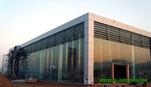 二、全玻幕墙:是由玻璃肋和玻璃面板构成的玻璃幕墙。当玻璃幕墙高度超过4m(玻璃厚度10,12mm),5m(玻璃厚度15mm),6m(玻璃厚度19mm)时,全玻璃幕墙应悬挂在主体结构上。