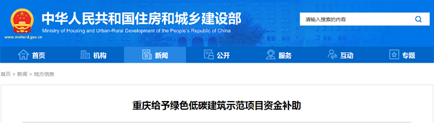 日前,重庆市住房和城乡建设委员会与市财政局共同出台《重庆市绿色低碳建筑示范项目和资金管理办法》,对四类“绿色低碳建筑示范项目”给予财政补助资金,促进建设领域绿色低碳发展,发挥示范项目的引领和带动作用。